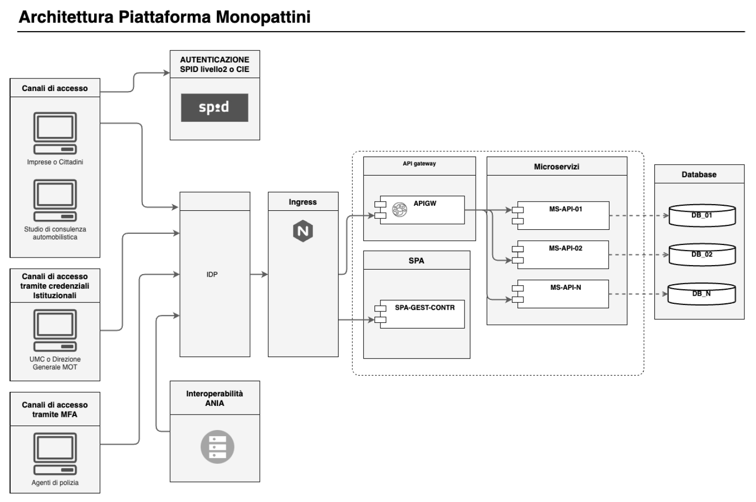 con riferimento al controllo degli accessi logici ed autenticazione, attraverso l'infrastruttura IAM Forgerock, in particolare la parte di autenticazione è gestita con un Identity Portal IDP federato con SPID mentre la parte di accesso è gestita direttamente dall'infrastruttura Forgerock dei portali;